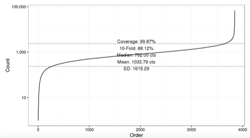 2.大于12000个shRNA/gRNA的文库,10 fold覆盖度>70%,shRNA/gRNA覆盖度>90%。